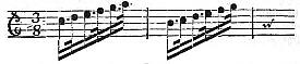 §. 10. In geschwinden Stücken wird der Geigebogen bey jedem Puncte aufgehoben; folglich jede Note von der andern abgesöndert und springend vorgetragen. Z.E.