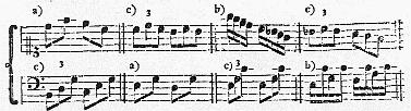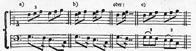 Einige Komponisten setzen häufig zwey= a) oder viergliedrige b) Figuren gegen dreygliedrige c).