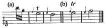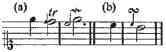 Kommt ein Triller nach einem Vorschlage vor, so kan vor der folgenden herunter Fig. XIX. (a) oder hinauf gehenden Note (b) ein neuer stehen.