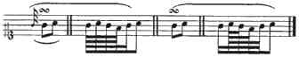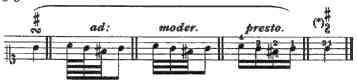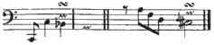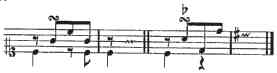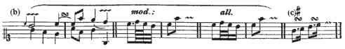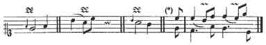 Hingegen thut der Prall=Triller allein, bey dem Exempel (*), in Allegretto und in einer noch hurtigern Zeit-Maasse besser als zusammen gesetzt. Man kan überhaupt mercken, daß so wohl der einfache als prallende Doppelschlag an den Stellen selten gut thut, wo ein Triller ohne Nachschlag statt hat.