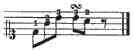 §. 37. Endlich kömmt der Doppelschlag auch nach zwey kleinen Zweyunddreißigtheilen vor der Note, worüber er stehet, vor. Diese Nötgen werden so geschwind als möglich an den Doppelschlag gehängt und mit ihm verbunden. Die dreyfache Schwäntzung bleibt ebenfalls allezeit <80ii> unverändert. Diese noch zeithero von niemanden angemerckte Manier stellt in der Kürtze einen Triller von unten vor, und wird also auch an dessen Stelle über einer kurtzen Note gebraucht. Man kan diese Manier den Doppelschlag von unten nennen. Sein Zeichen und seine Ausführung ist bey Fig. LXXI. abgebildet.