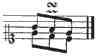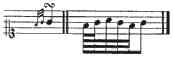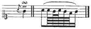 §. 12. Aus der Aehnlichkeit dieses Doppelschlags mit einem Triller mit dem Nachschlage folgt, daß der erstere sich ebenfalls mehr nach hinauf <88> als herunterwärts neiget. Man trillert also bey geschwinden Noten gantze Octaven und weiter bequem durch diese Manier hinauf, aber nicht herunter. Dieser oft vorkommende Fall wird gemeiniglich ausser dem Claviere so angedeutet, wie wir bey Fig. LIII. sehen. Bey geschwinden herunter gehenden Noten hat also der Doppelschlag nicht statt.