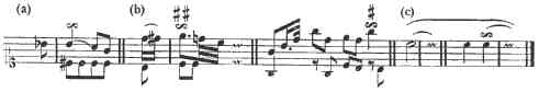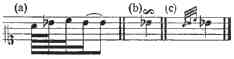 Ausserdem kommt er auch im hinaufgehen und springen vor (b). Man siehet hieraus, daß dieser Schleiffer alsdenn ein langsam <109> ausgefüllter Anschlag mit dem Tertien=Sprunge ist. Man kan durch ihn eine Haltung ebenfals mit Affeckte ausfüllen.