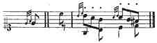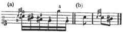 §. 2. Dieser Schneller wird allezeit geschwinde gemacht und kommt niemahls anders als bey gestossenen und geschwinden Noten vor, welchen er einen Glantz giebt, und wo er just zur Ausfüllung zureicht.